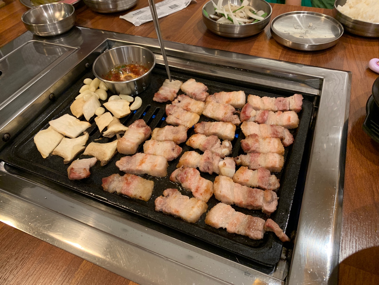 참나무향이 나지는 않았지만 통삼겹으로 초벌되니깐 육즙도 살아있는 것 같고 부드러웠다.