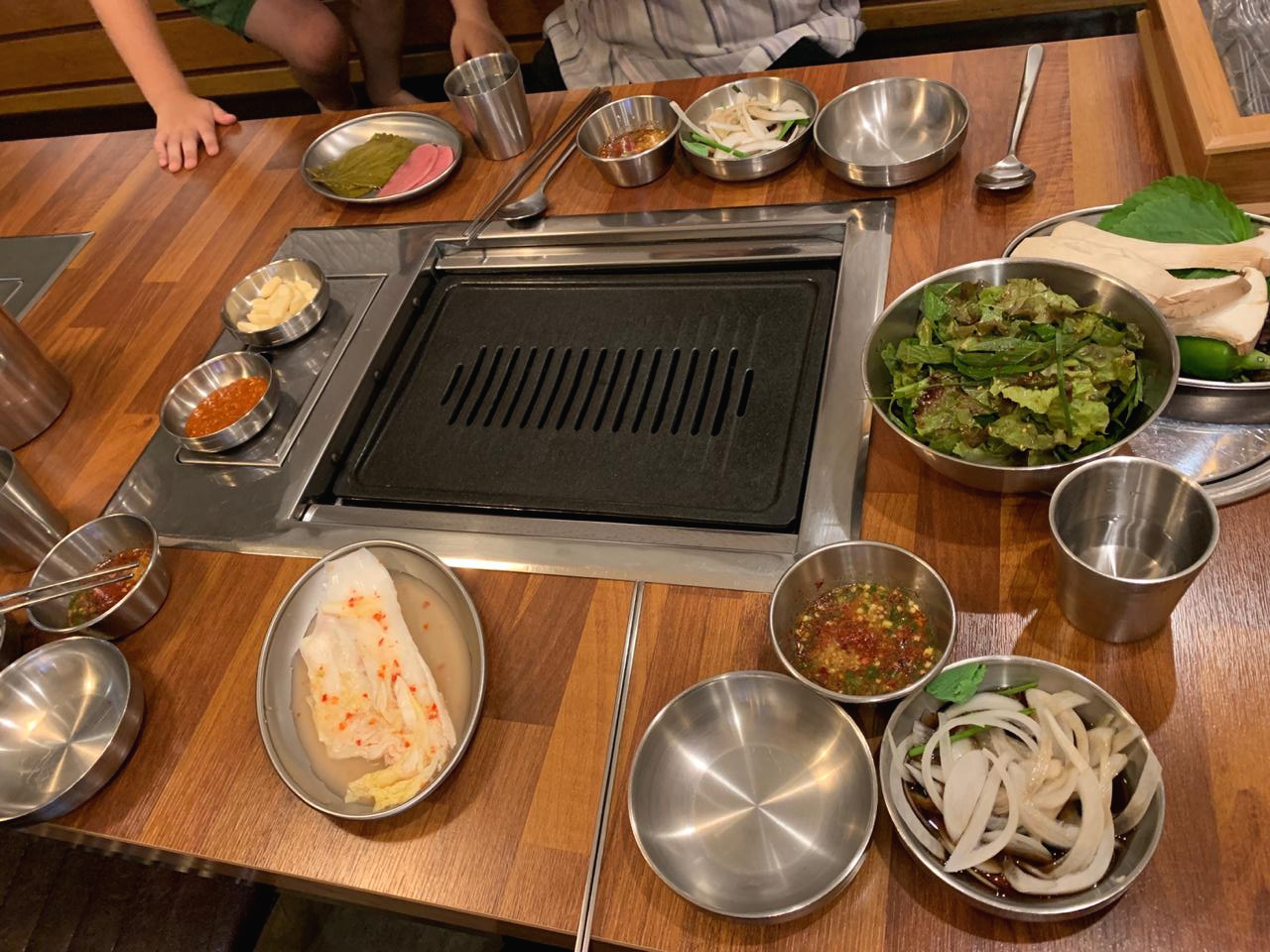 초벌구이 덕분에 확실히 생고기를 구울 때보다 고기는 연기가 적게 나고 기름도 덜 튀어서 좋다.