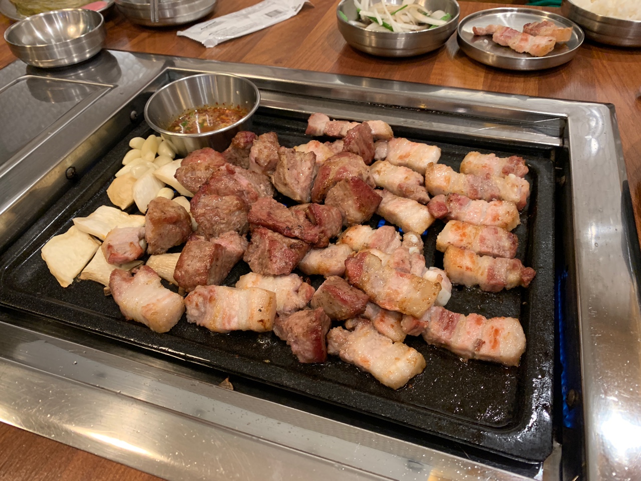 참나무향이 나지는 않았지만 통삼겹으로 초벌되니깐 육즙도 살아있는 것 같고 부드러웠다.