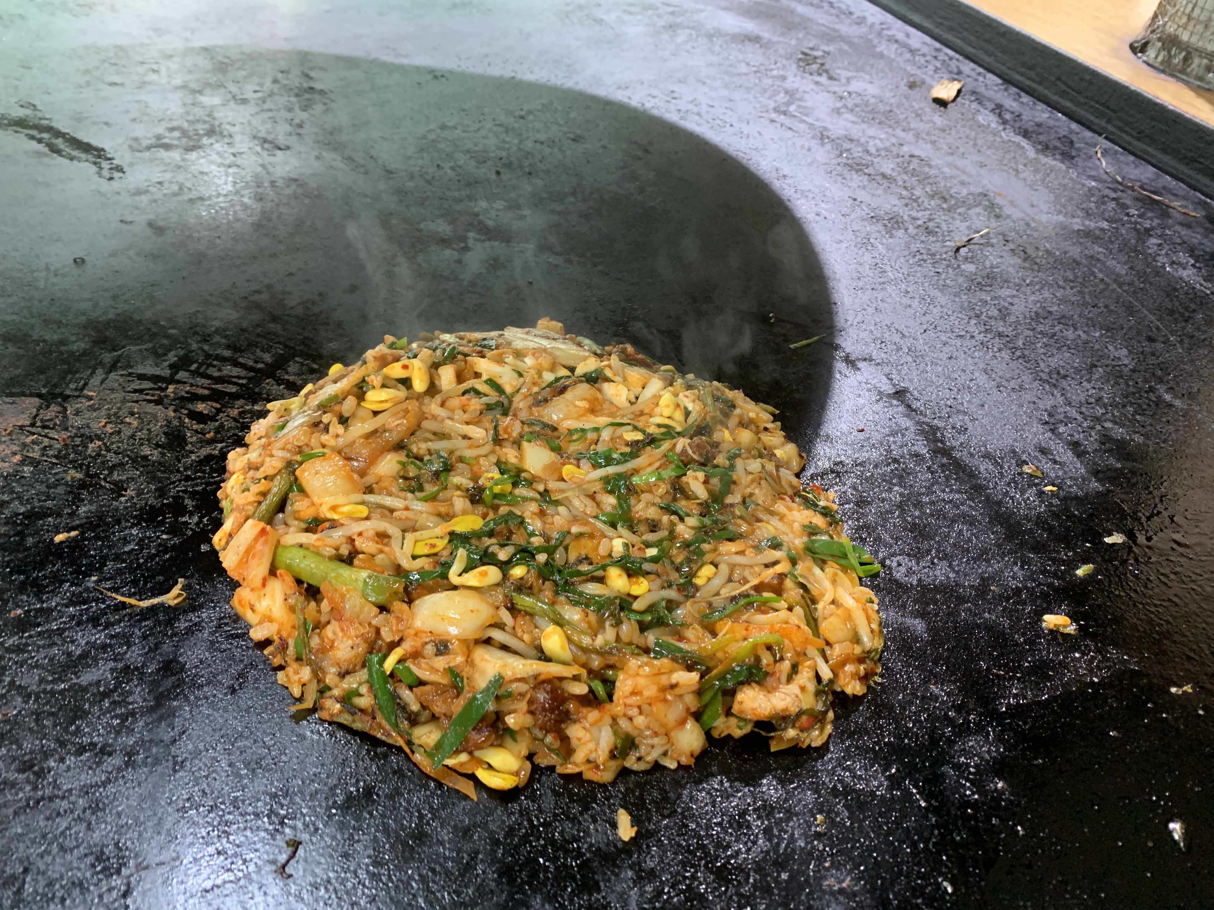 철판에 볶아진 볶음밥은 마무리하기 딱 좋다.