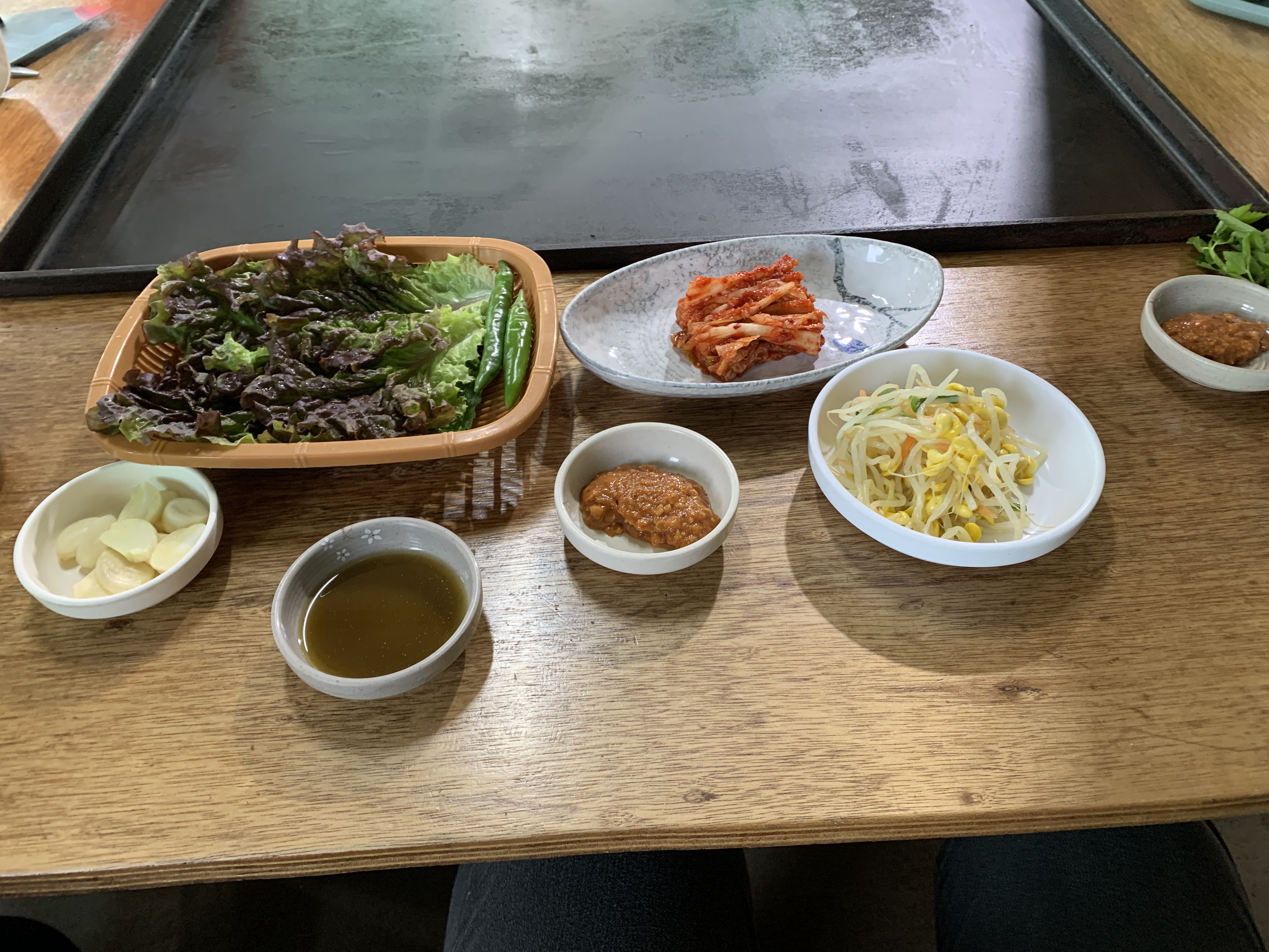 주문과 함께 순식간에 반찬과 고기가 세팅이 된다.