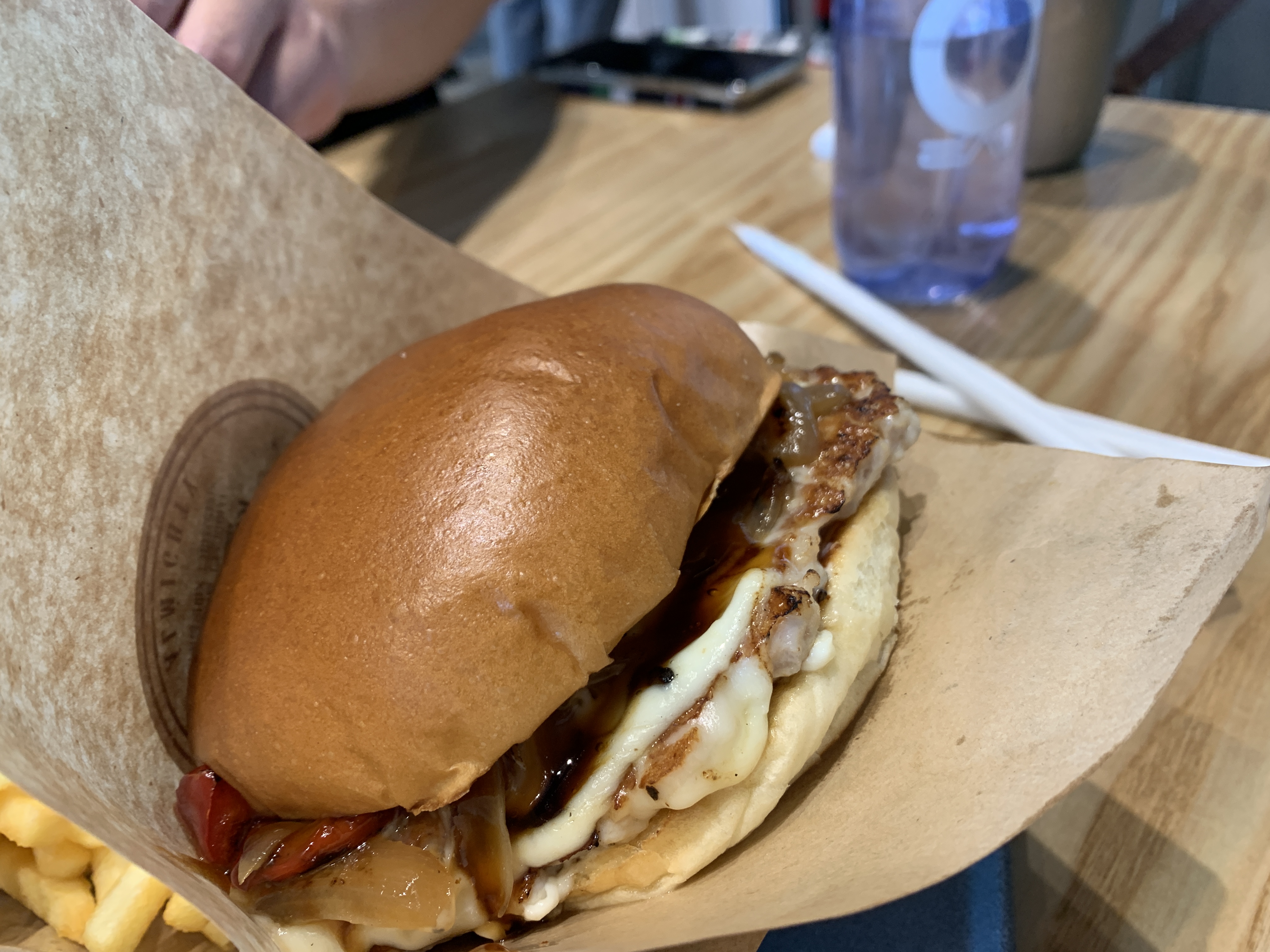 치즈버거와 다르게 치킨버거는 양파가 많이 볶아져서 매콤한 맛보다 단맛을 많이 내는 편이었다.