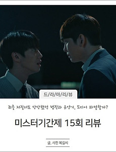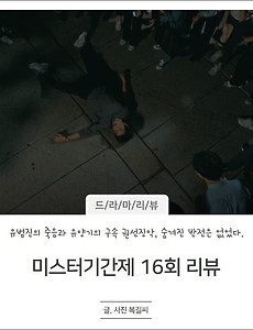 728x90 복길이: 공부/TV101 드라마 아스달연대기 14회리뷰_시작하지마자 각자 다른 위기에 빠진 4명의 영웅 14회 줄거리 13회에서는 대제관이 된 탄야, 모모족, 모모족 사뱌라를 구한 은섬 이렇게 3가지로 정리 되는 것 같다.시즌 3의 첫 회이지만 모모족이 새롭게 추가 된 것 말고는 특별한 내용은 없었던 것 같다. 14회부터는 꽤 많은 이야기들과 떡밥이 던져질 것 같다.다시 흥미진진해지고 있는 아스달 연대기 14회를 정리해보겠다. 아스달연대기 13회가 궁금하다면 ▶▶▶ 아사신의 직계임을 증명한 탄야와 돌담불을 탈출한 은섬 13회 줄거리 # 뇌안탈로 각성이 된 눈별, 다시 연결된 혈맥 시장에 함께 나간 은채, 눈별과 도티 갑자기 시장에 큰 소가 나타나서 사람들을 공격을 한다.아빠 하림이 소에게 공격을 당할 뻔 하자 눈별은 힘으로 막아내고 쓰러진다.(눈별의 눈이 파란색으로 변한다)집으로 온 눈별을 하림이 상태를 확인하고 잘린 .. 2019. 9. 10. 드라마 아스달연대기 13회 리뷰_아사신의 직계임을 증명한 탄야와 돌담불을 탈출한 은섬 13회 줄거리 시즌 1,2의 떡밥은 모두 정리되고, 탄야가 아사신의 직계라는 것이 밝혀지고 끝이 났다. 그리고 드디어 아스달연대기 시즌3이 시작되었다.대제관이 된 탄야와 그 옆을 지키고 있는 사야, 돌담불을 탈출한 은섬이 세사람이 앞으로 어떻게 할지 너무 궁금하다.그리고 권력을 되찾은 타곤과 태알하도 어떻게 계속 권력을 더 지키게 될지도... 시즌 3 첫회 아스달연대기 13회를 정리해보겠다. 복길씨의 아스달연대기 시즌 1이 궁금하다면 ▶▶▶ 아스달연대기 시즌 1_이야기의 시작. 예언의 아이들 시즌 1 줄거리 # 아사신의 직계임을 증명한 탄야, "은섬아 이제 널 구할 수 있어" 탄야는 와한족 전통 춤으로 별방울을 찾아내며 아사신의 곶족(직계)임을 증명했다.태알하와 준비했던 말을 아사신의 말이라며 전하고 별방울을 흔들자 .. 2019. 9. 8. 드라마 미스터기간제 16회(최종화) 리뷰_유범진의 죽음과 유양기의 구속 권선징악, 숨겨진 반전은 없었다. 16회 줄거리 지난 15회에서 범진과 어버지 유양기의 죄가 드러났고, 무혁은 쉴 틈없이 공격을 했다.궁지에 몰린 범진은 본색을 보이며 폭발했다. 15회를 보면서 소름돋는 반전이 있을까라는 기대를 했다. 수아를 죽인 범인이 범진이 아니고 다른 사람이라는 지..하지만 미스터기간제는 반전없이 매우 정직한 드라마로 마무리가 되었다.예상을 깨는 스토리는 없었지만 범진(이준영)의 연기에 소름이 돋았던 미스터 기간제 최종화 16회를 리뷰해보겠다. 미스터기간제 15회가 궁금하다면 ▶▶▶죄를 저질러도 당당했던 범진과 유양기, 드디어 파멸할까? 15회 줄거리 # 오경위의 자수?, 유양기 의원의 지시 고백! 범진을 자극하던 무혁은 오팀장이 자수를 했다는 연락을 받는다. 범진은 오팀장의 자수로 무혁이 더 곤란해질 것이라고 사람들의 관심을 .. 2019. 9. 6. 드라마 미스터기간제 15회_죄를 저질러도 당당했던 범진과 유양기, 드디어 파멸할까? 15회 줄거리 지난 14회에 범진과 유양기 강제의 삼자대면이 이루어졌다. 이제 진짜 수아사건의 진범이 밝혀지게 될 듯하다. 15회에서는 늘 우위에서 사람들을 조정하던 범진와 유양기는 어떤 반격을 할지 아니면 권선징악으로 당할지 정리해보겠다. 미스터기간제 14회가 궁금하다면 ▶▶▶ 태라까지 자살로 만든 범진의 실수를 찾아낸 강제 그리고 드디어 삼자대면 14회 줄거리 # 자신이 수아를 죽였다고 고백하는 범진," 날 위해 죽였다고요!" 범진은 아버지 유양기에게 자신이 수아를 죽였다고 고백했다. 자신을 위해 살인을 했냐는 유양기의 질문에 범진은 비웃는다. "아버지 때문이 아니라 날 위해 죽였다고요! 내 앞 날 위해서! 이 일이 알려지면 아들 친구랑 스폰한 국회의원 아버지를 두었다고 낙인 찍히고 손가락질 당했겠죠. 그런데 왜!.. 2019. 9. 5. 이전 1 ··· 11 12 13 14 15 16 17 ··· 26 다음 728x90