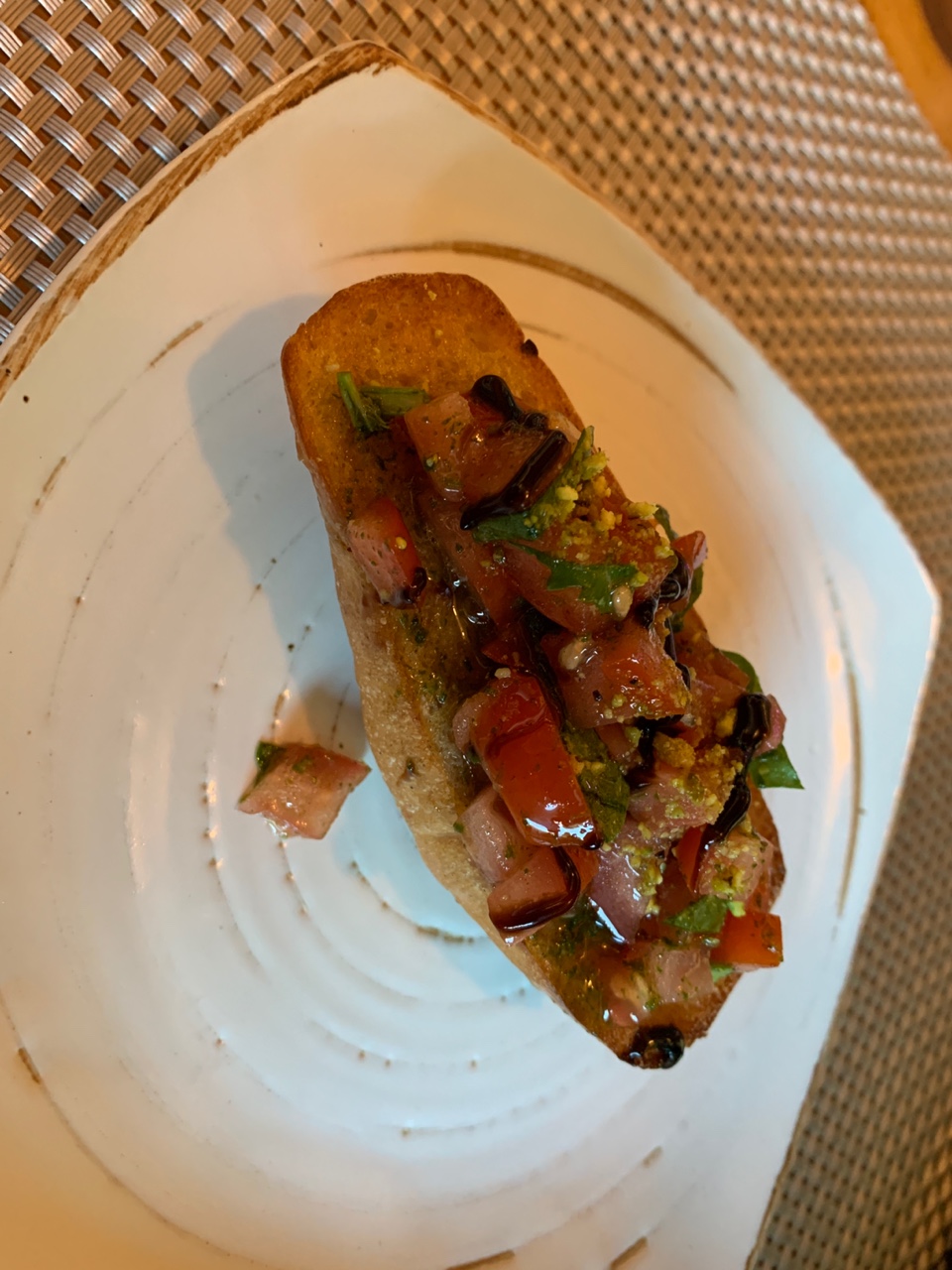 정확히 이름은 기억이 나지 않는데 바게트빵에 토마토마리네이드를 올린 에티타이저!