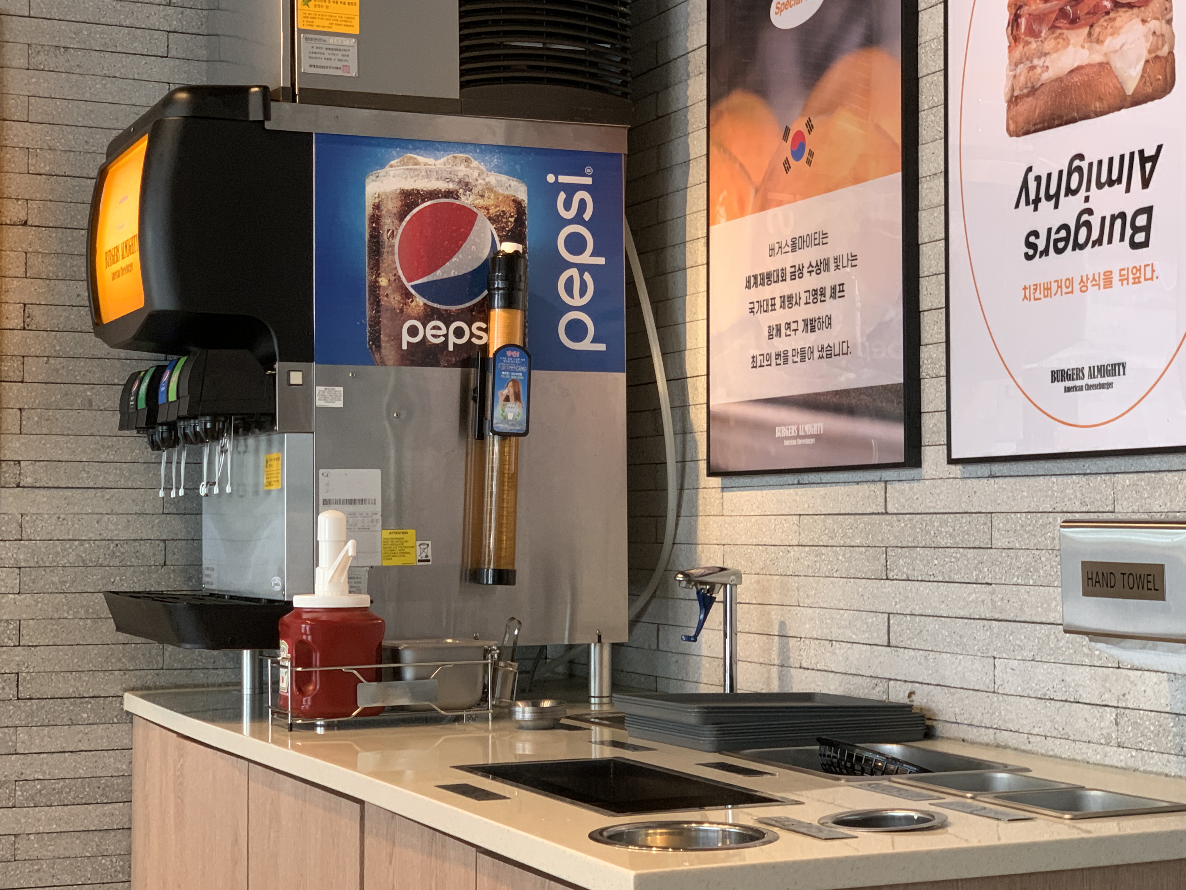 일반 음식점이라기보다 햄버거집이고 오랜 시간 있는 곳이 아니라서 특별히 준비가 되어 있지 않는 것 같다.
