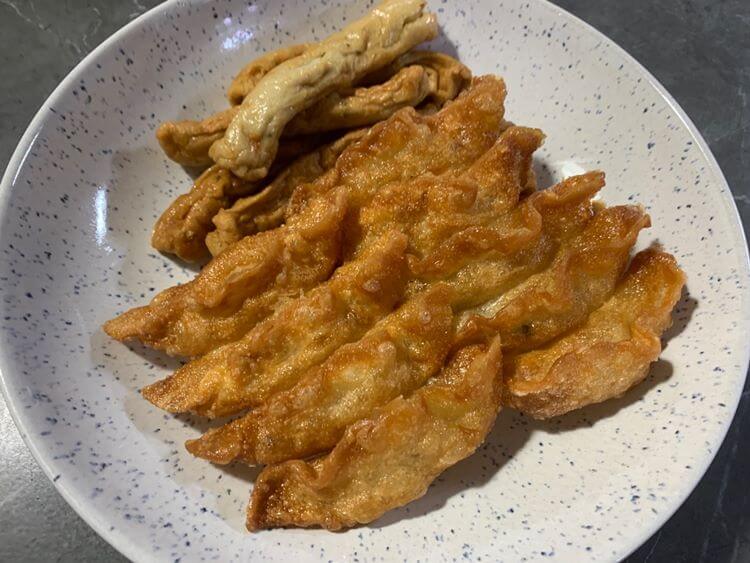 특별한 거 없는 만두와 어묵을 떡볶이 소스에 찍어먹으면 정말 맛있다.