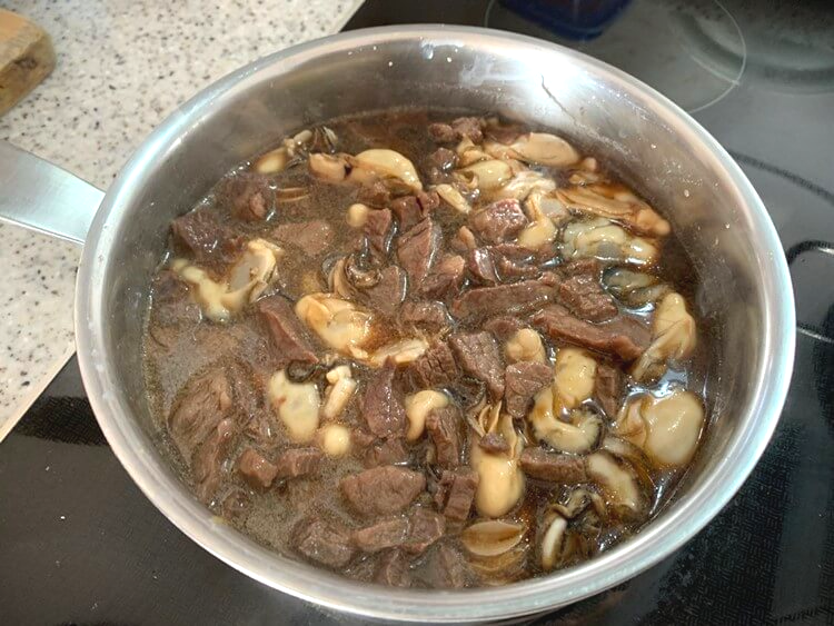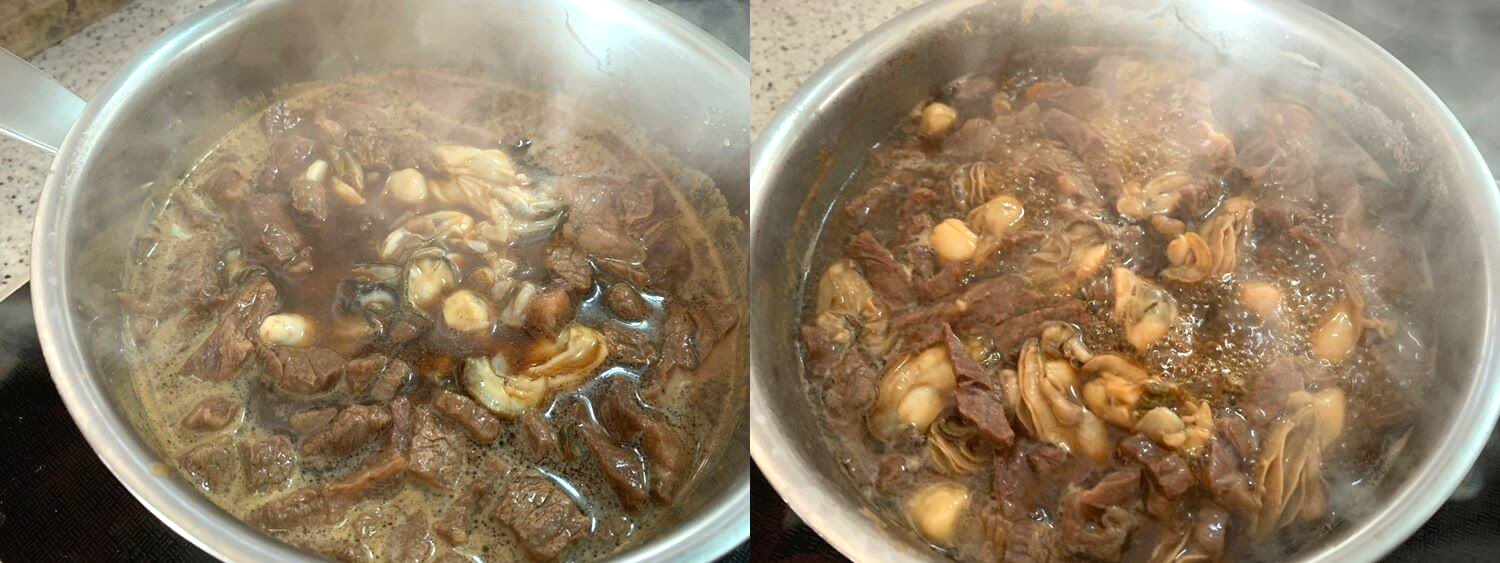 2. 간장이 끓기 시작하면 굴을 넣고 더 끓인다.