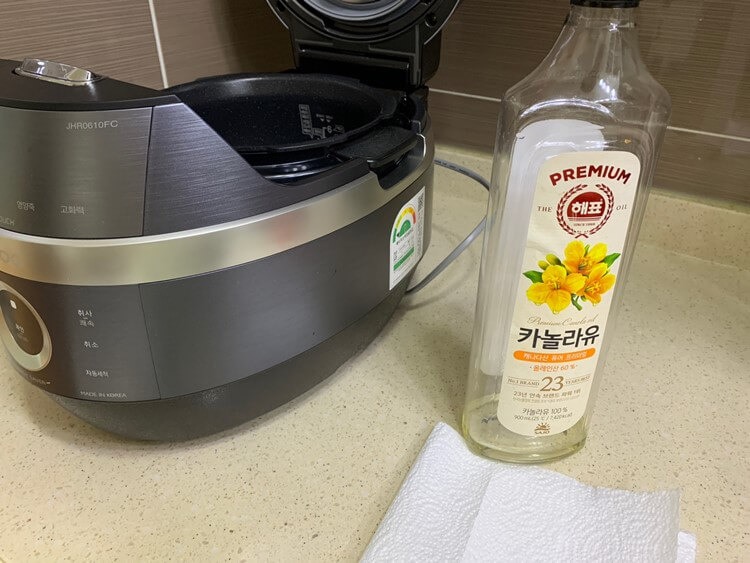 연마제 제거를 위해 식용유로 닦았으니 내솥과 분리형 커버가 미끄러울 것이다.