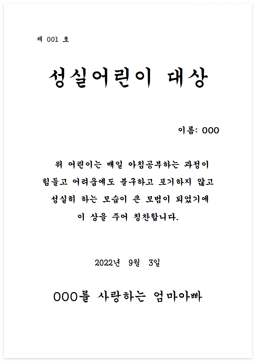 상장은 아이의 자존감을 높여주는 좋은 도구이다.