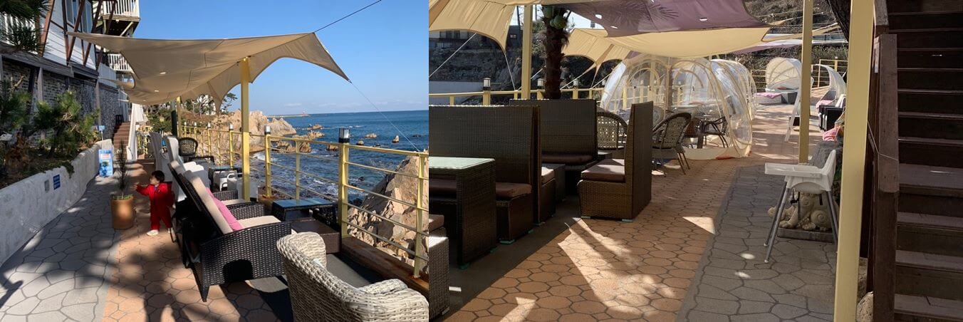 바다를 편안하게 감상할 수 있게 준비된 야외테라스