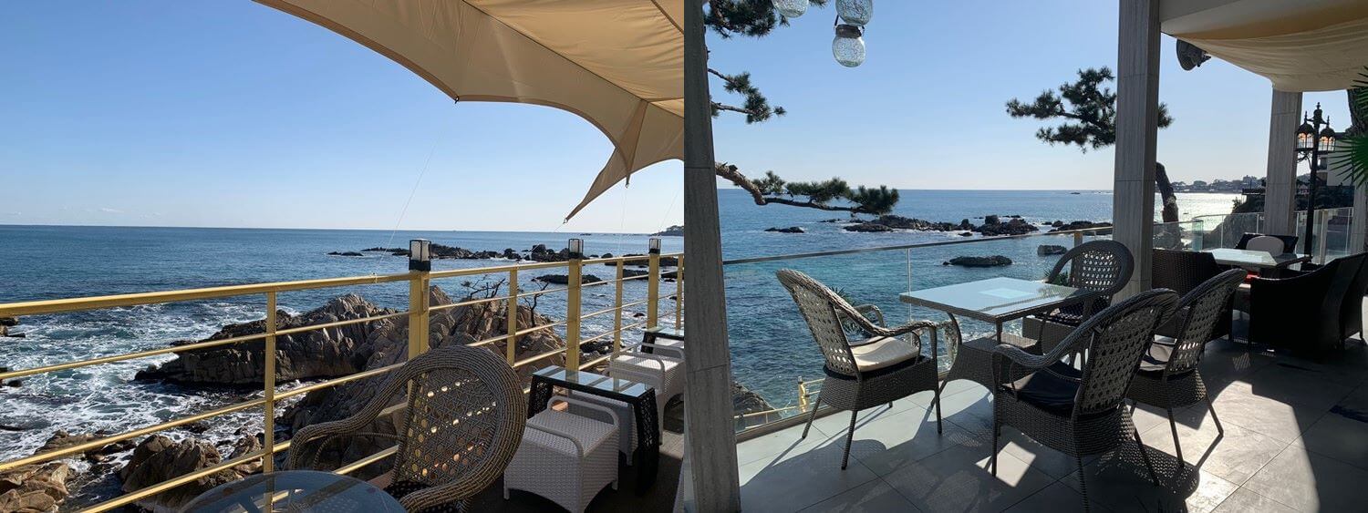 바다를 편안하게 감상할 수 있게 준비된 야외테라스