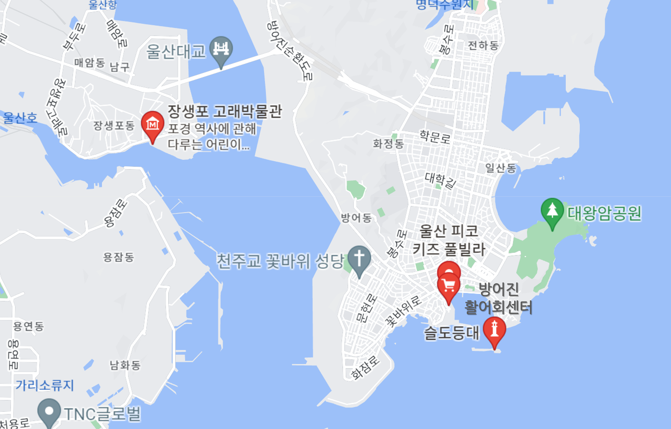 (피코키즈풀빌라에서 방어진활어센터가 바로 보인다.)