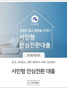 728x90 서민형안심전환대출 신청방법1 최대 1%대 이자 서민형 안심전환대출 놓치지 말자_조건, 우대금리, 신청 방법 알짜정리 복길씨네는 보험회사를 통해서 주택담보대출을 받고 3%대의 이자와 30년 상환으로 원금을 갚고 있다.매번 대출금을 낼 때마다 아깝다는 생각과 대출금이 얼마라도 줄었으면 좋겠다고 생각했다.그리고 얼마전 친구에게서 서민형 안신전환 대출에 대해서 듣고 찾아보게 되었다.최대 1%대의 고정금리라는 이야기에 귀가 쫑긋하게 되었다.복길씨네 조건으로는 신혼부부 우대(0.2%)로 1.9%까지는 가능하지 않을까라는 기대가 들었다.하지만 안타깝게 주택 가격순이라는 것을 보고 조금 어렵겠다는 생각도 들었지만 도전해보기로 했다! 신청하기 전에 서민형 안심전환대출이 무엇인지, 조건 등에 대해서 알아보자 > 서민형 안심전환 대출이란?한국주택금융공사에서 진행하는 변동금리 주택담보대출을 연 1%대 고정금리대출로 변하는 정잭모기지 상품 .. 2019. 9. 16. 이전 1 다음 728x90